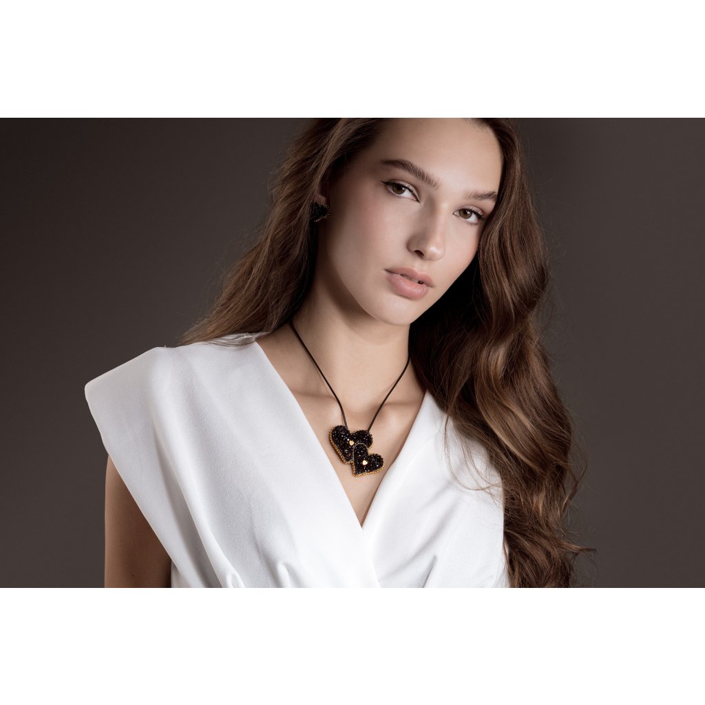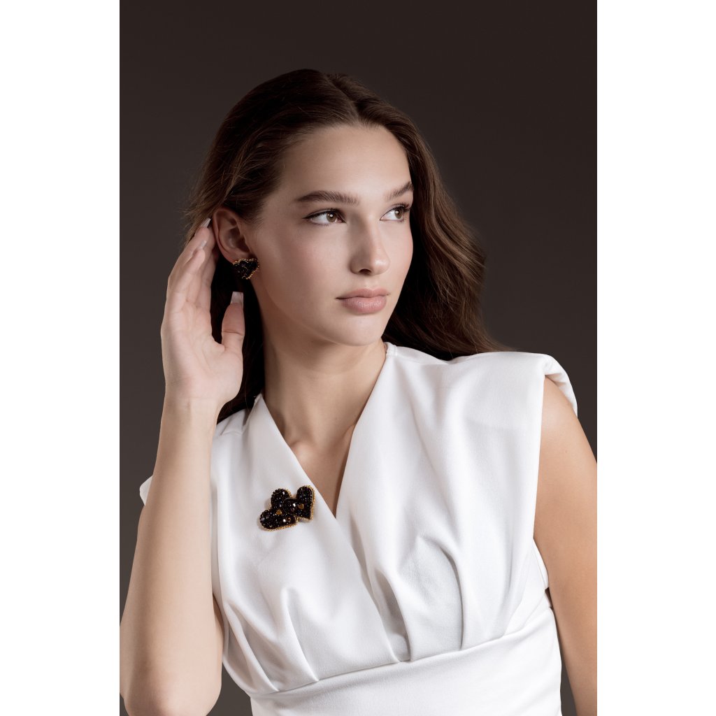 Na fotografiích jsou také k vidění "České náušnice - Dvojsrdce noci", ten tvoří s broží "Česká brož – Dvojsrdce noci“ dokonalý set.